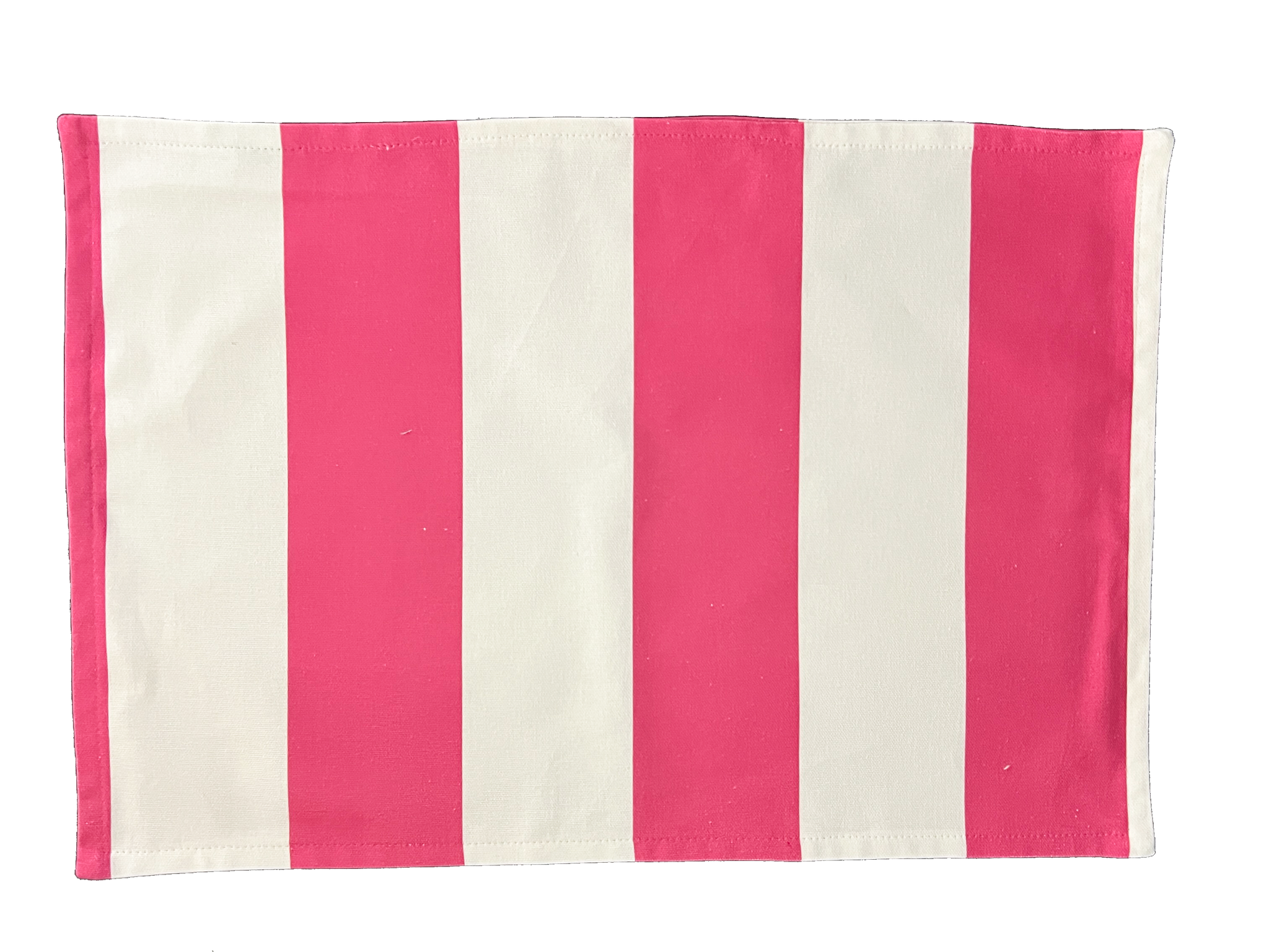 Add bounty of color and entertainment to your table with this set of four placemats in our signature Draper Stripe Hot Pink.