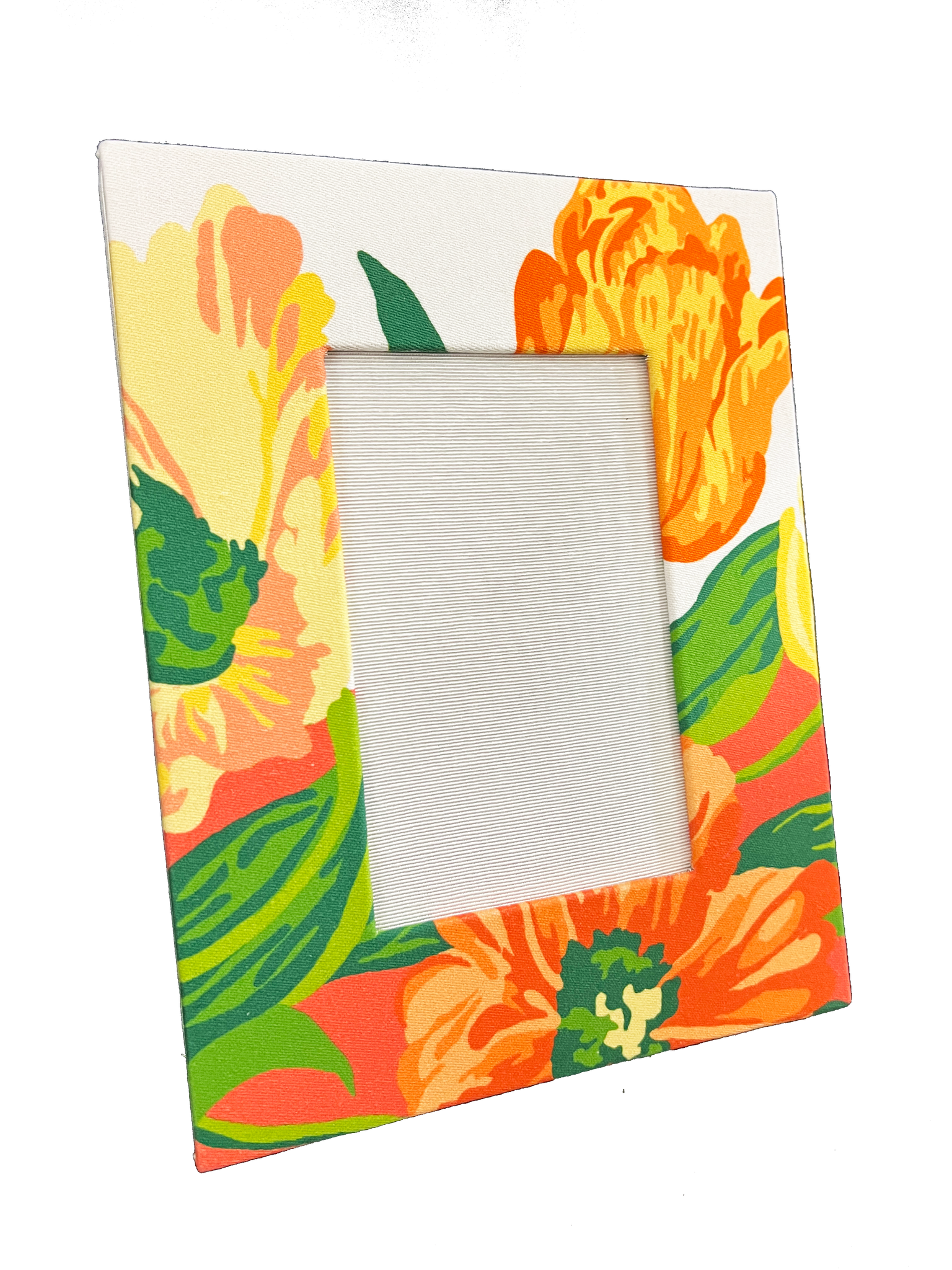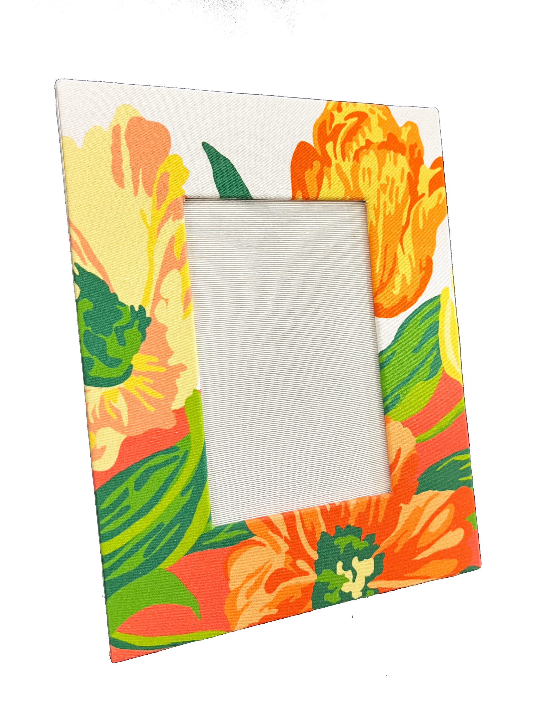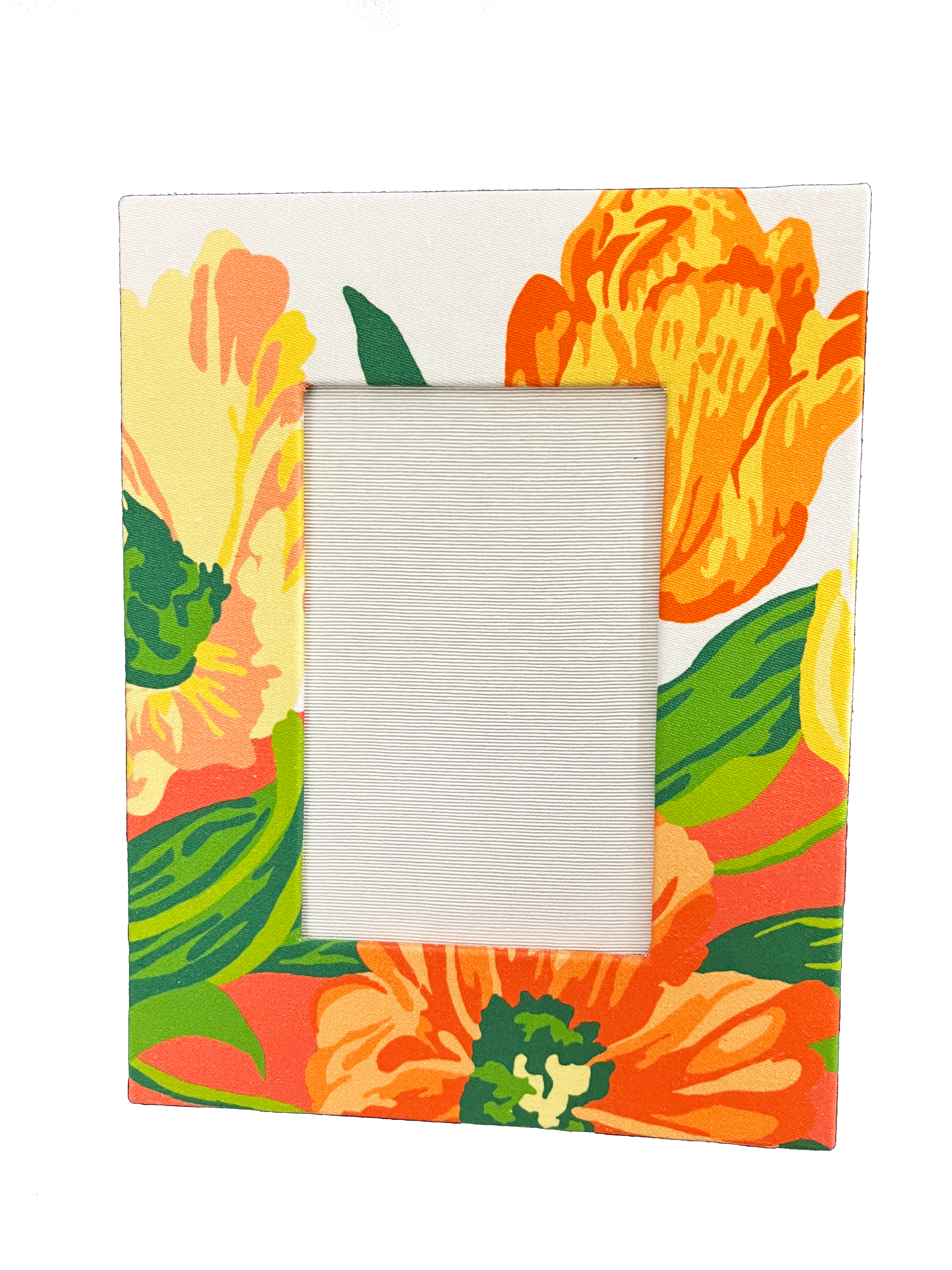 Covered in our Dorothy Draper Anniversary Tulip, reverse side with a coordinating satin fabric. This archival fabric was recently recolored for Grand Hotel's Salle a Manger.