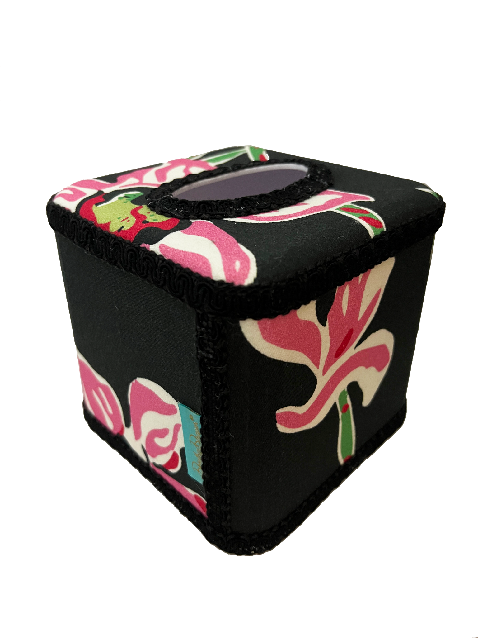 Always practical and charming. Covered in our Dorothy Draper Akakina Black fabric with a black gimp trim.