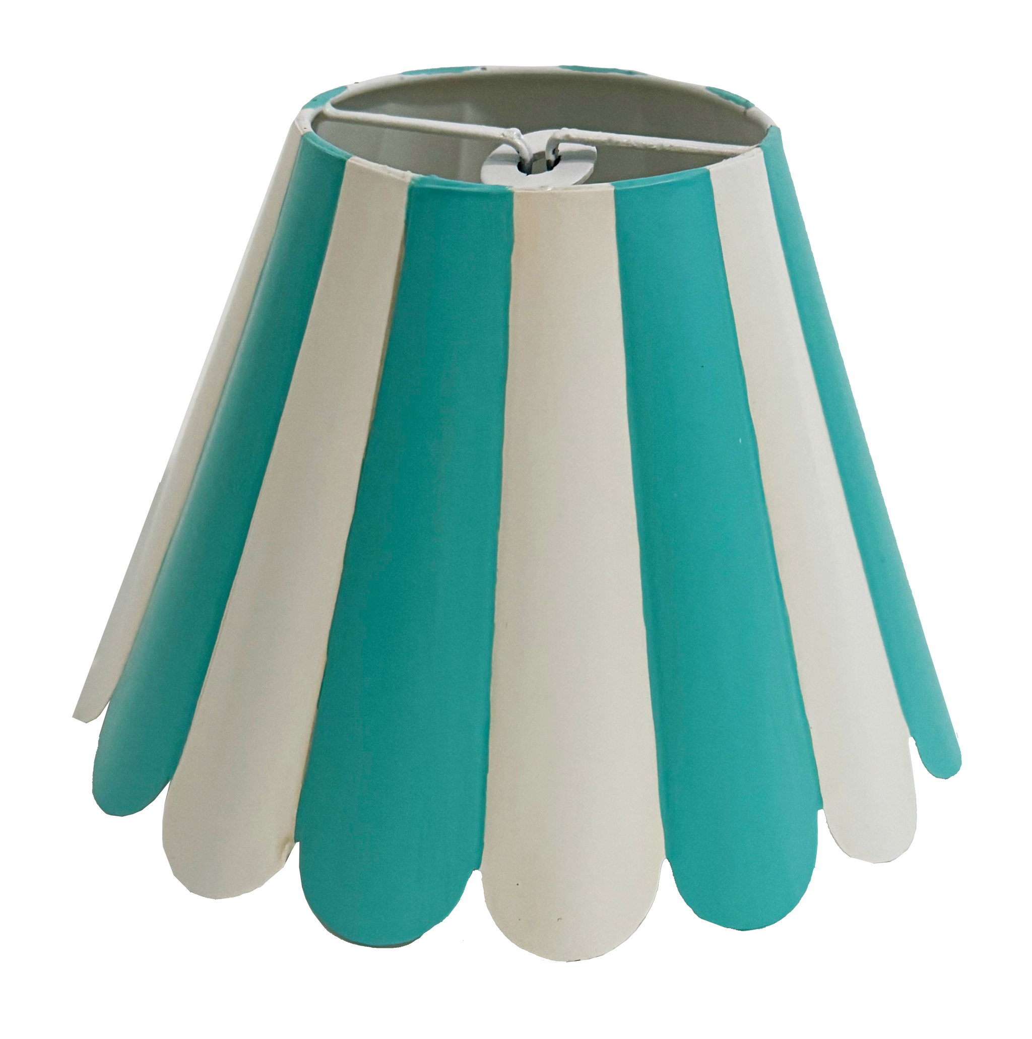Cabana Stripe Scallop Chandelier Shade - a signature Draper look adds a fun detail to any chandelier! Handmade and hand-painted tole shades with bulb clip attached. 3" top / 6.25" bottom / 4.5" high. Please allow 4-5 weeks for order to ship. Custom colors available, please contact cs@dorothydraperhome.com for details.
