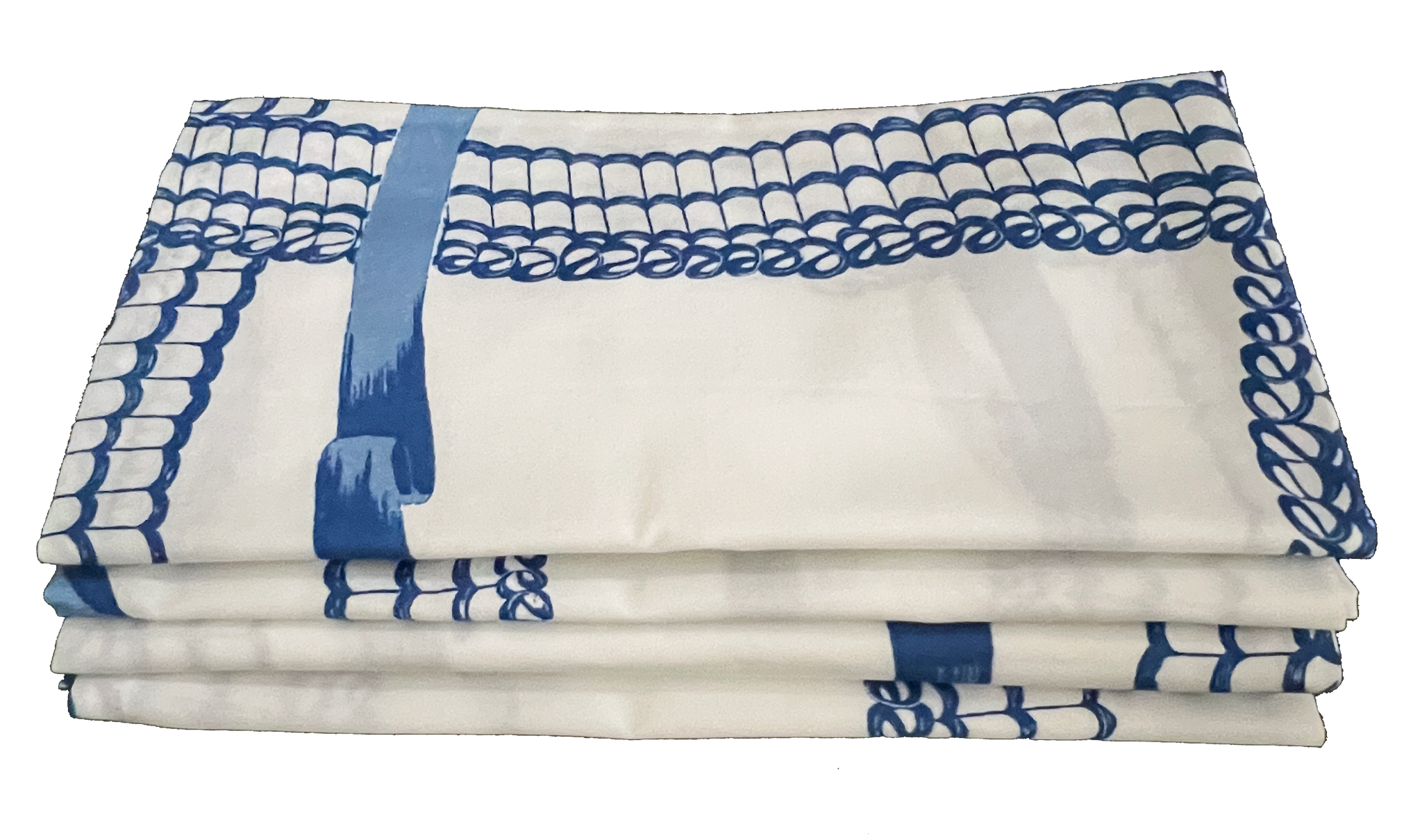 Carleton Varney designed this classic candy ribbon trellis fabric in 1978 and it is still a favorite! Add bounty of color and entertainment to your table with this set of four napkins in a Carleton Varney original created design.