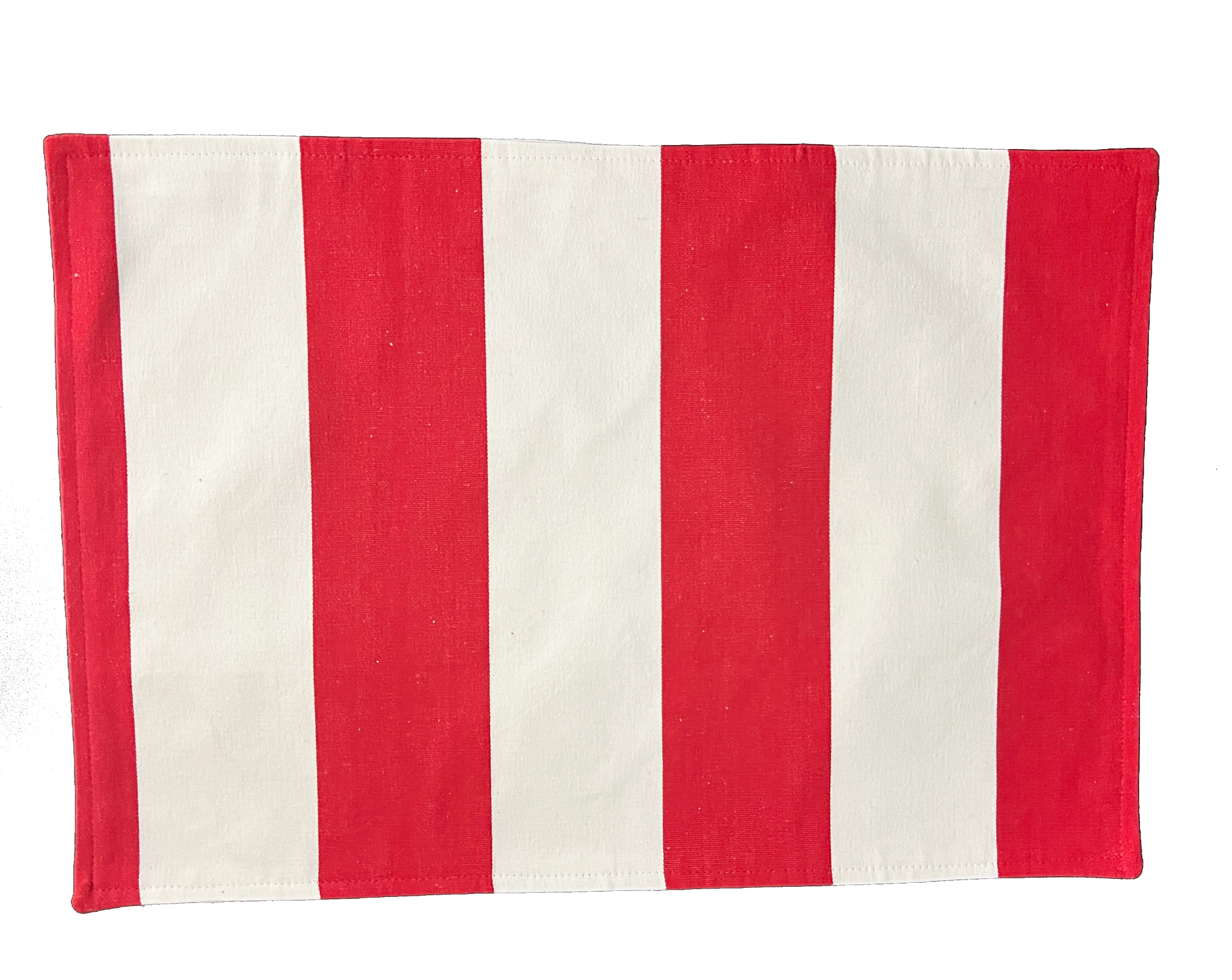 Add bounty of color and entertainment to your table with this set of four placemats in our signature Draper Stripe Red.
